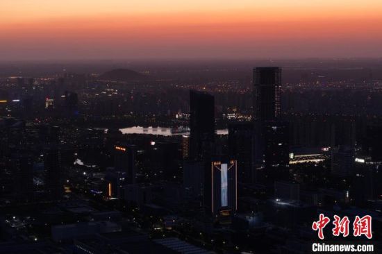 安徽合肥:日落時現(xiàn)火燒云 晚霞映紅天空